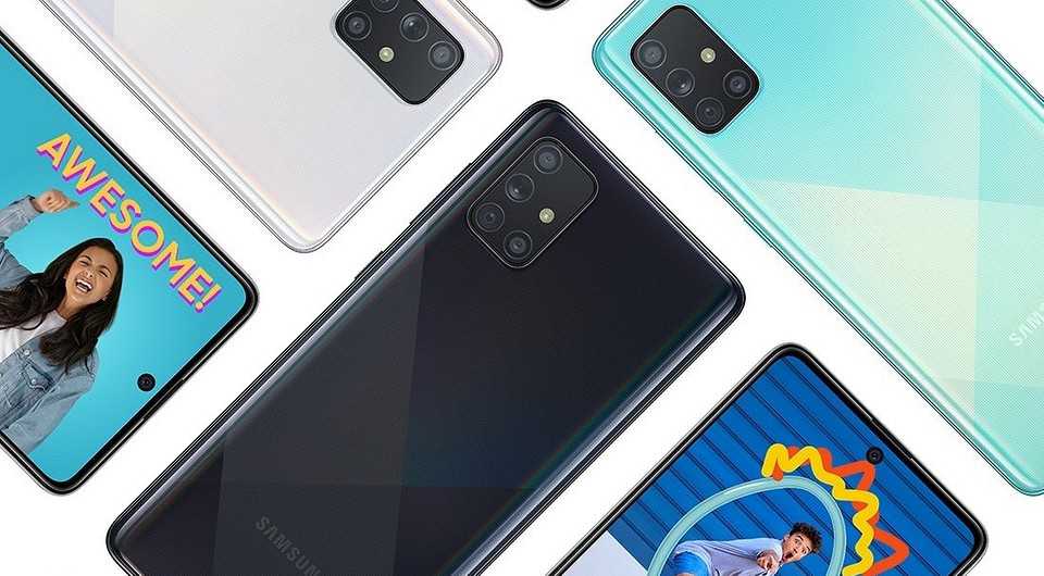 Galaxy A71 — обновленная версия популярной модели А70, которая вышла в прошлом году. Смартфон получил улучшенный набор камер и оригинальный дизайн: особенно привлекательно выглядит модель в голубом цвете с узором в виде квадратов.